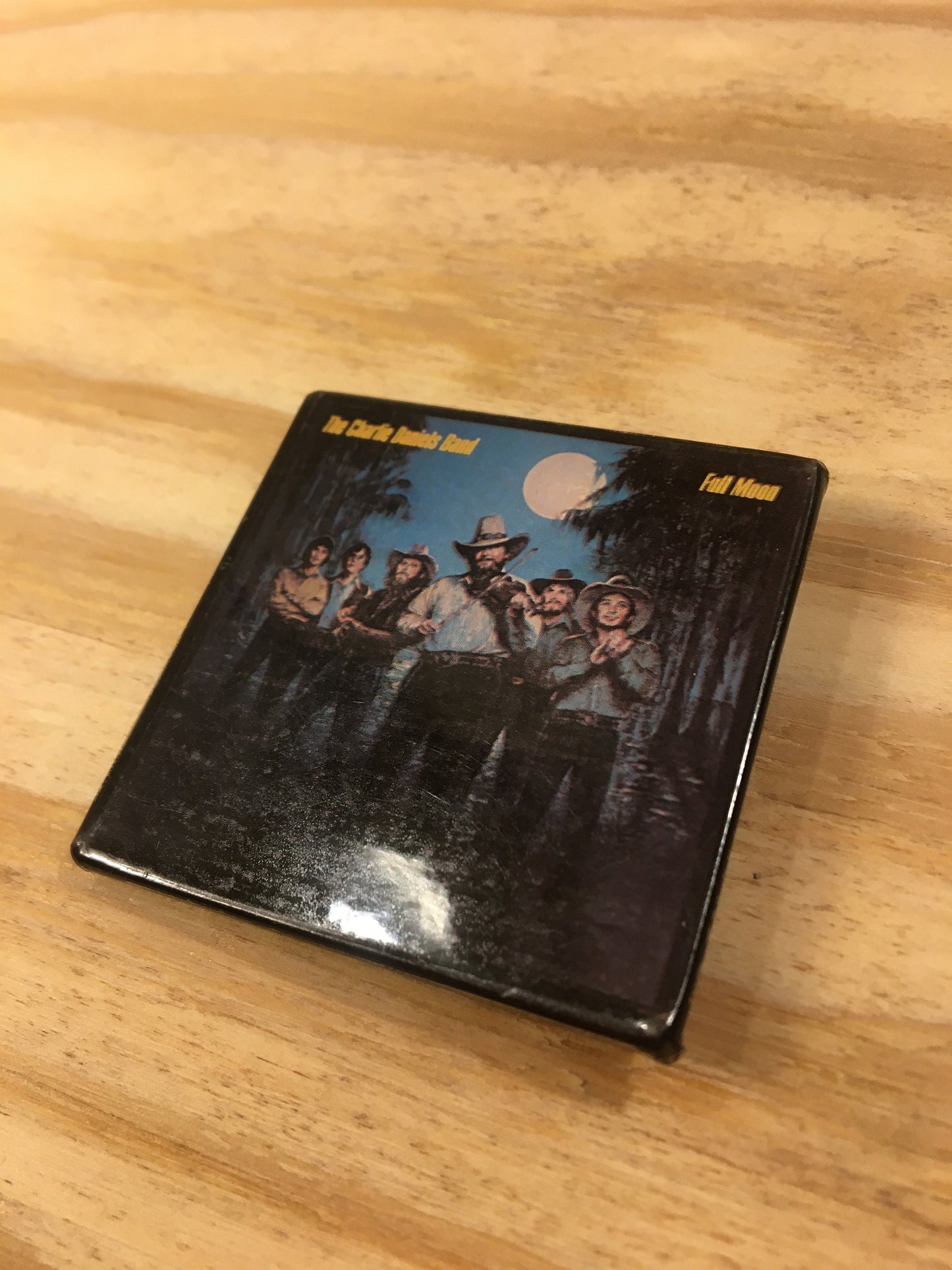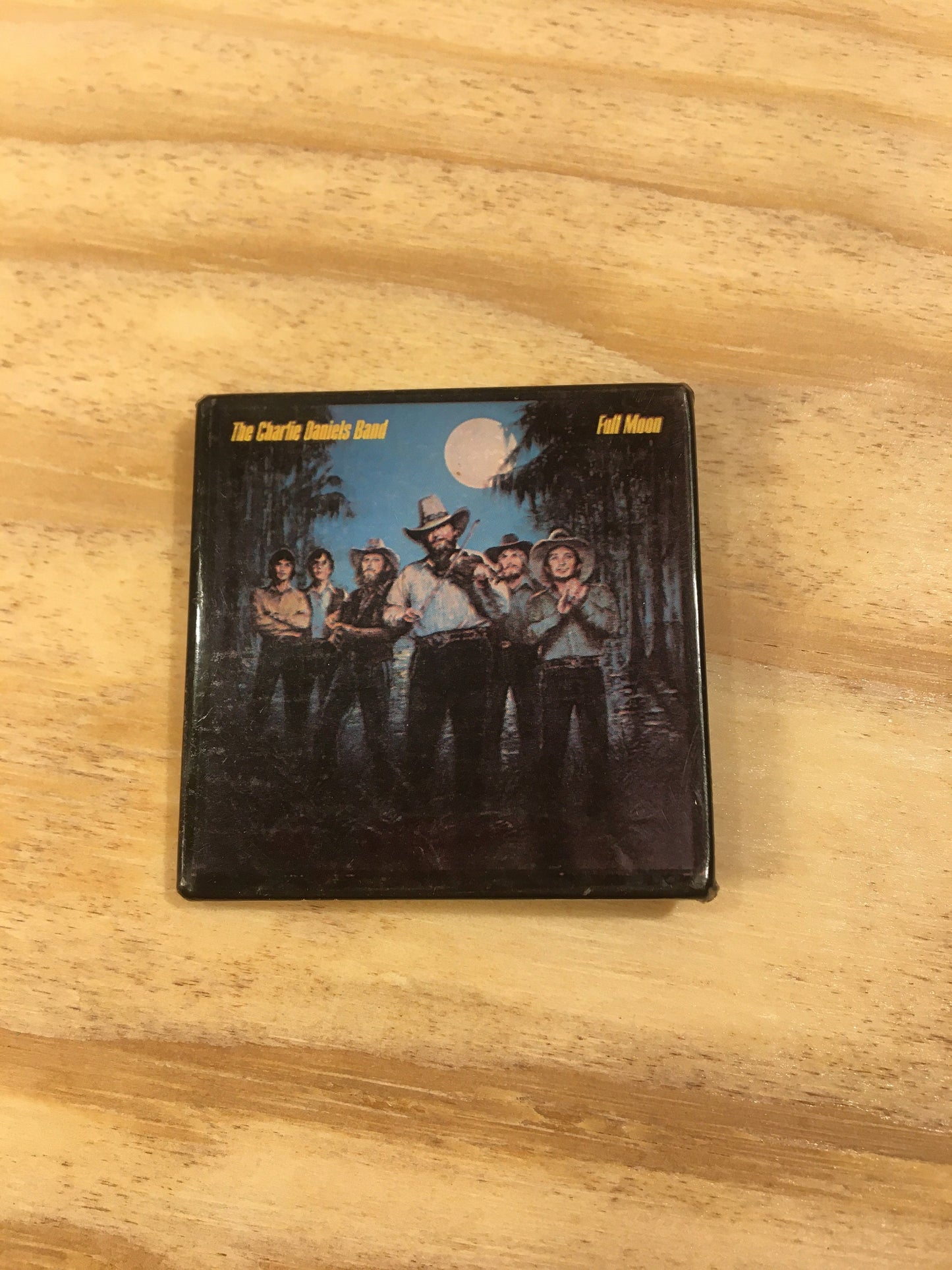 This vintage square pin looks like The Charlie Daniels Band Album for “Full Moon.”
